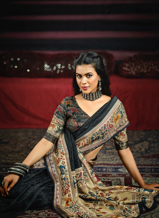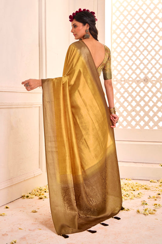 Pure Tusser Silk Sandstone Yellow Shaded Combin...