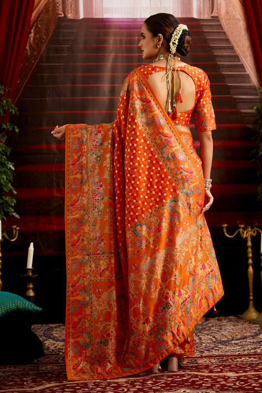 Pumpkin Orange Wealvet Tusser Silk fabric with ...