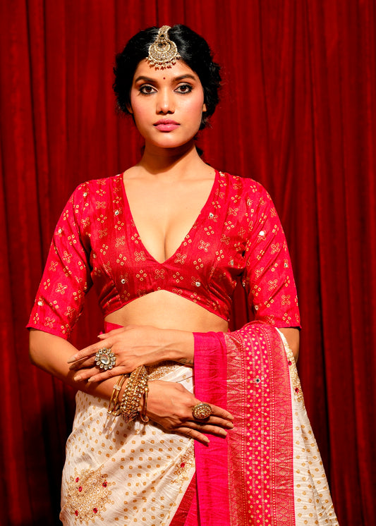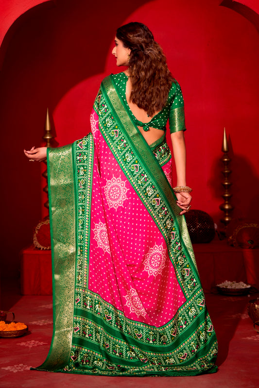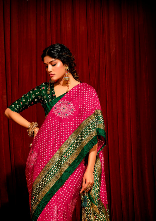 Pure Silk fabric with Magenta Pink and Dark Gre...