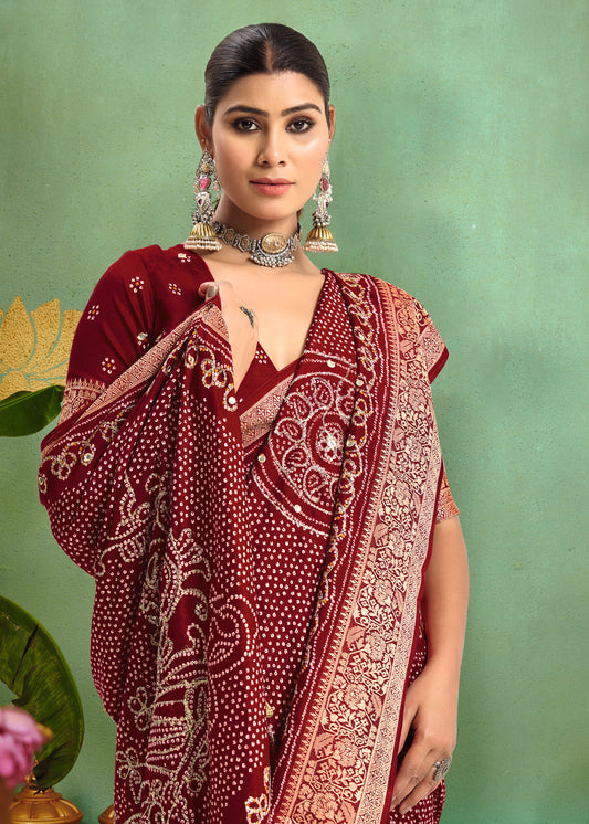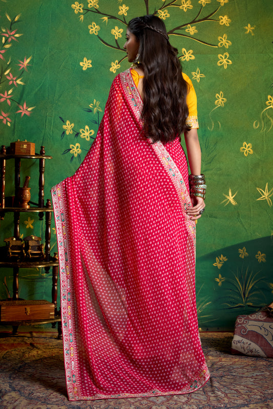 Pure Bamber Georgette Bandhej Saree with Deep P...