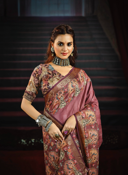 Timeless Grey Saree with Subtle Multicolor Chec...