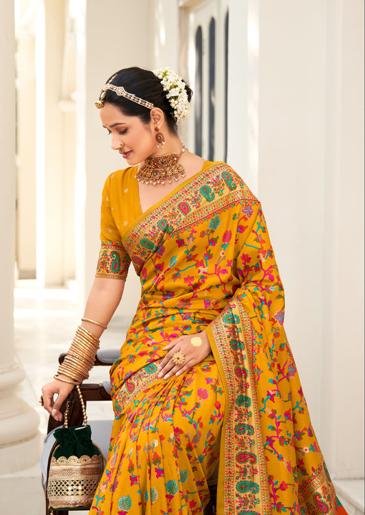 Classic Black and Vibrant Mustard Pure Silk Sar...
