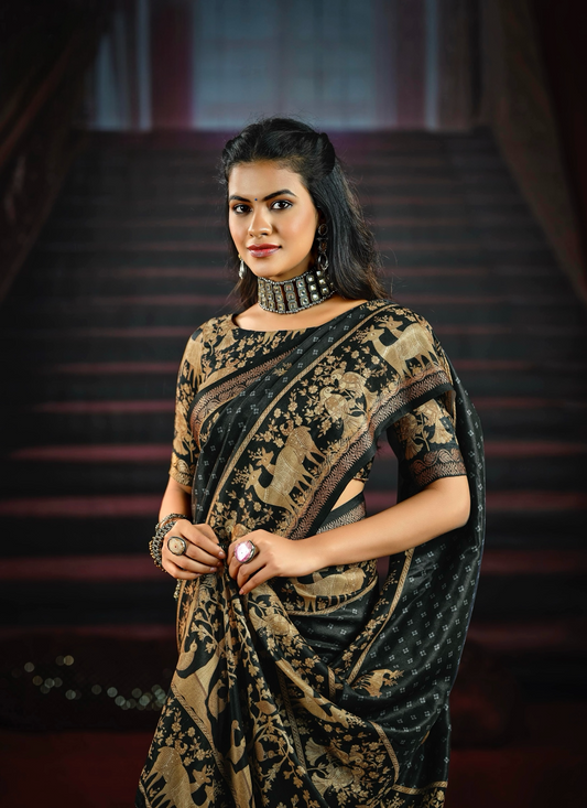 Pure Brasso fabric with Exclusive Deep Navy Blu...