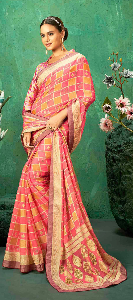 Exclusive Brasso fabric with Striking pink and ...