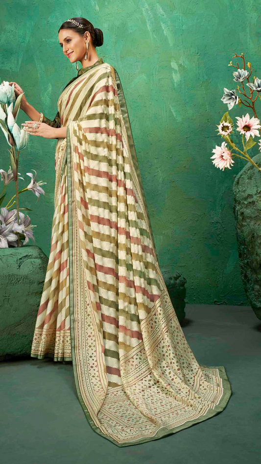 Exclusive Brasso fabric with Beige-Multi-colore...