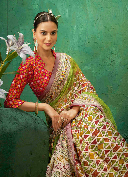 Exclusive Brasso fabric with Vibrant Green colo...