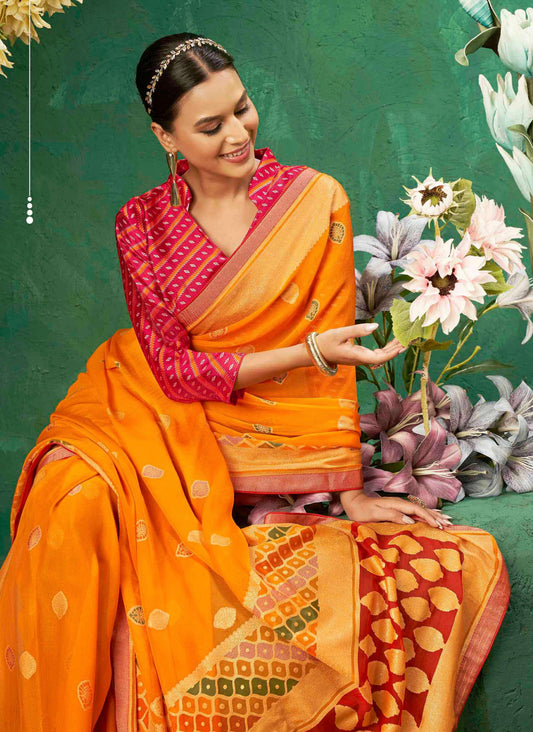 Exclusive Brasso fabric with Vibrant Orange col...