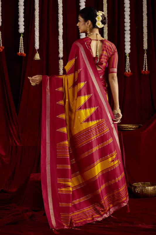 Vibrant Mustard and Striking Maroon Pure Silk S...