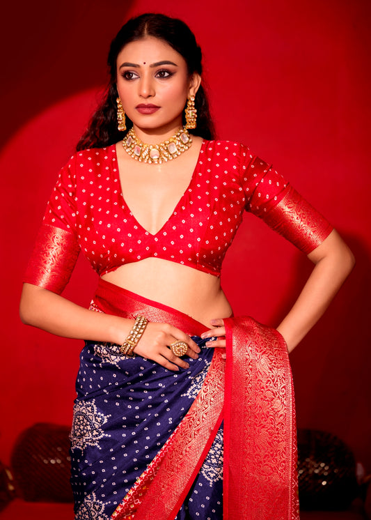 Pure Silk fabric with Royal Blue and Red Dual c...