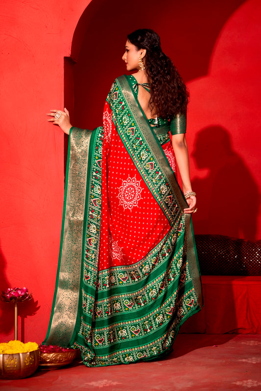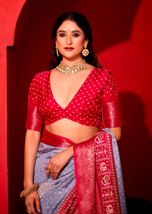Pure Silk fabric with Exclusive Red and Dark Gr...
