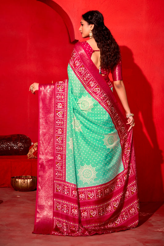 Navy Blue and Pista Green Pure Silk Saree with ...