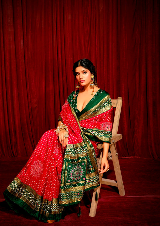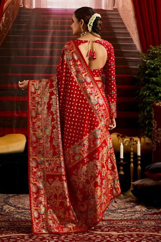 Red Wealvet Tusser Silk fabric with Attractive ...