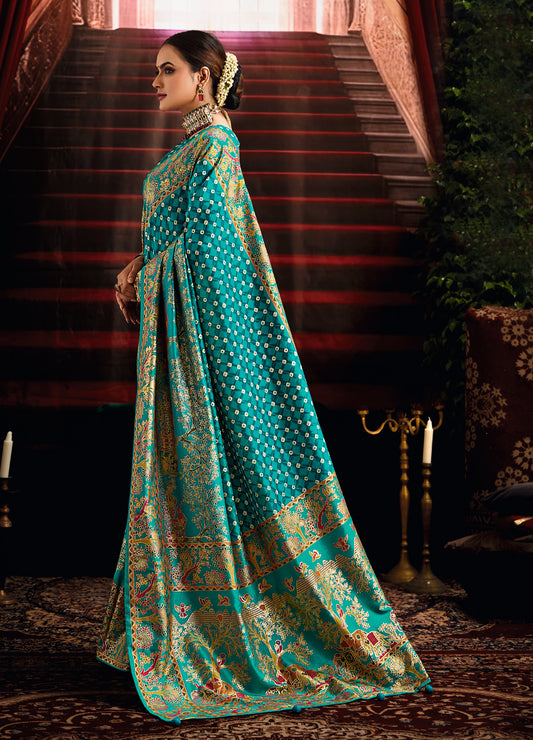 Pacific Blue Wealvet Tusser Silk fabric with At...