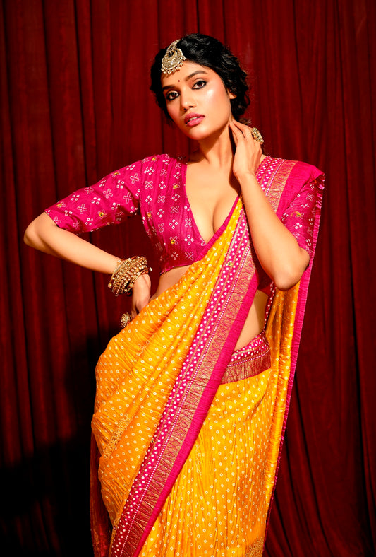 Pure Tusser Silk Sandstone Yellow Shaded Combin...