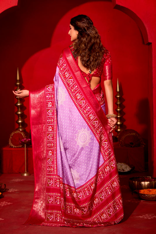 Striking Purple and Green Pure Silk Saree with ...