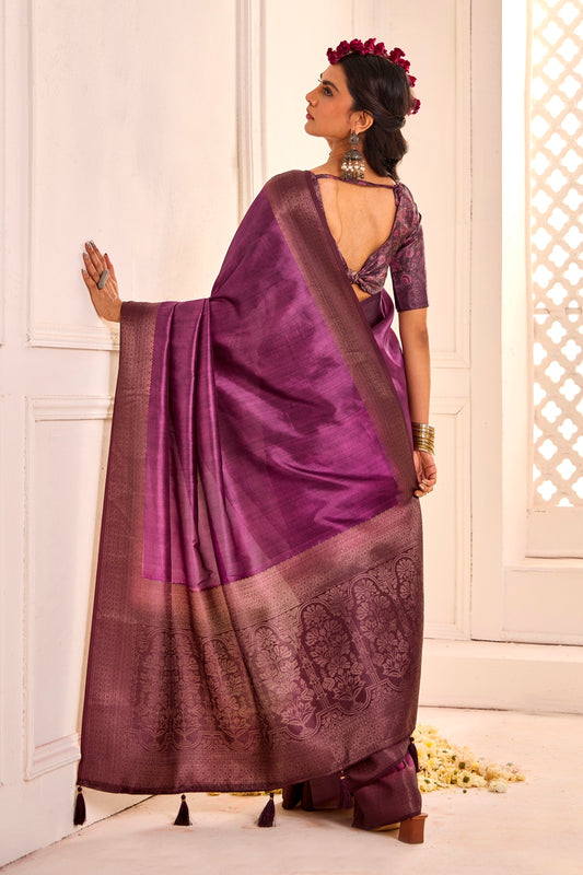Pure Tusser Silk Indigo Blue Shaded Combination...