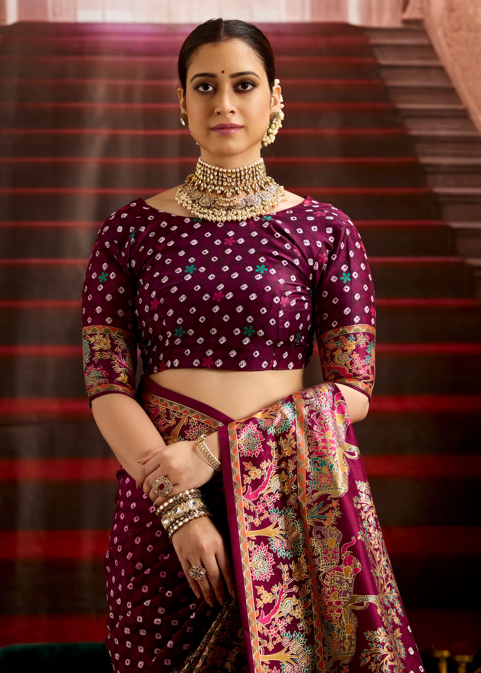 Blouse - Exclusive Looking Silken Fabric with Falsa Purple color Bandhej design.