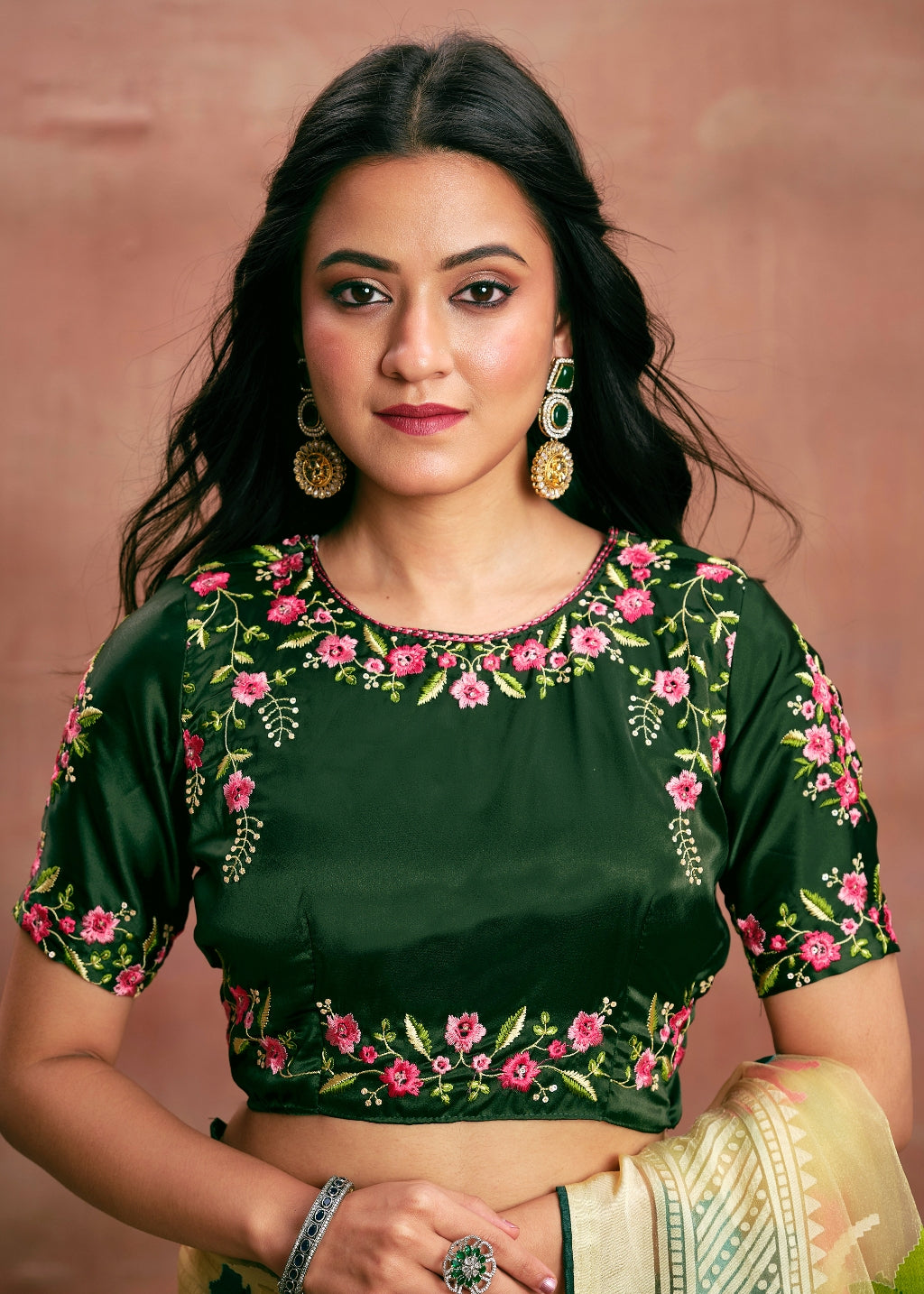 Blouse - Rich Look Embroidered Dark Green Color Design with Heavy Designer Look.