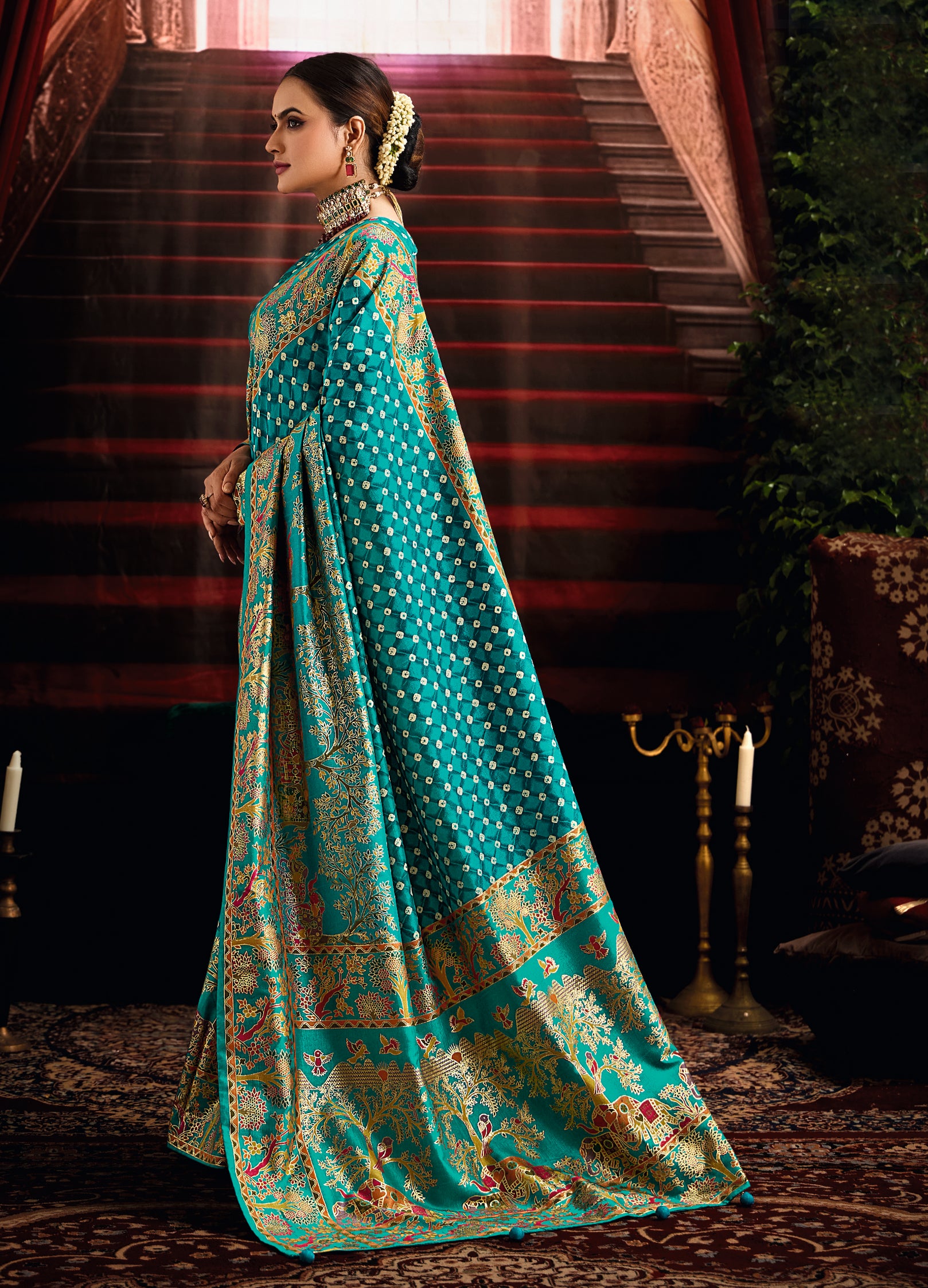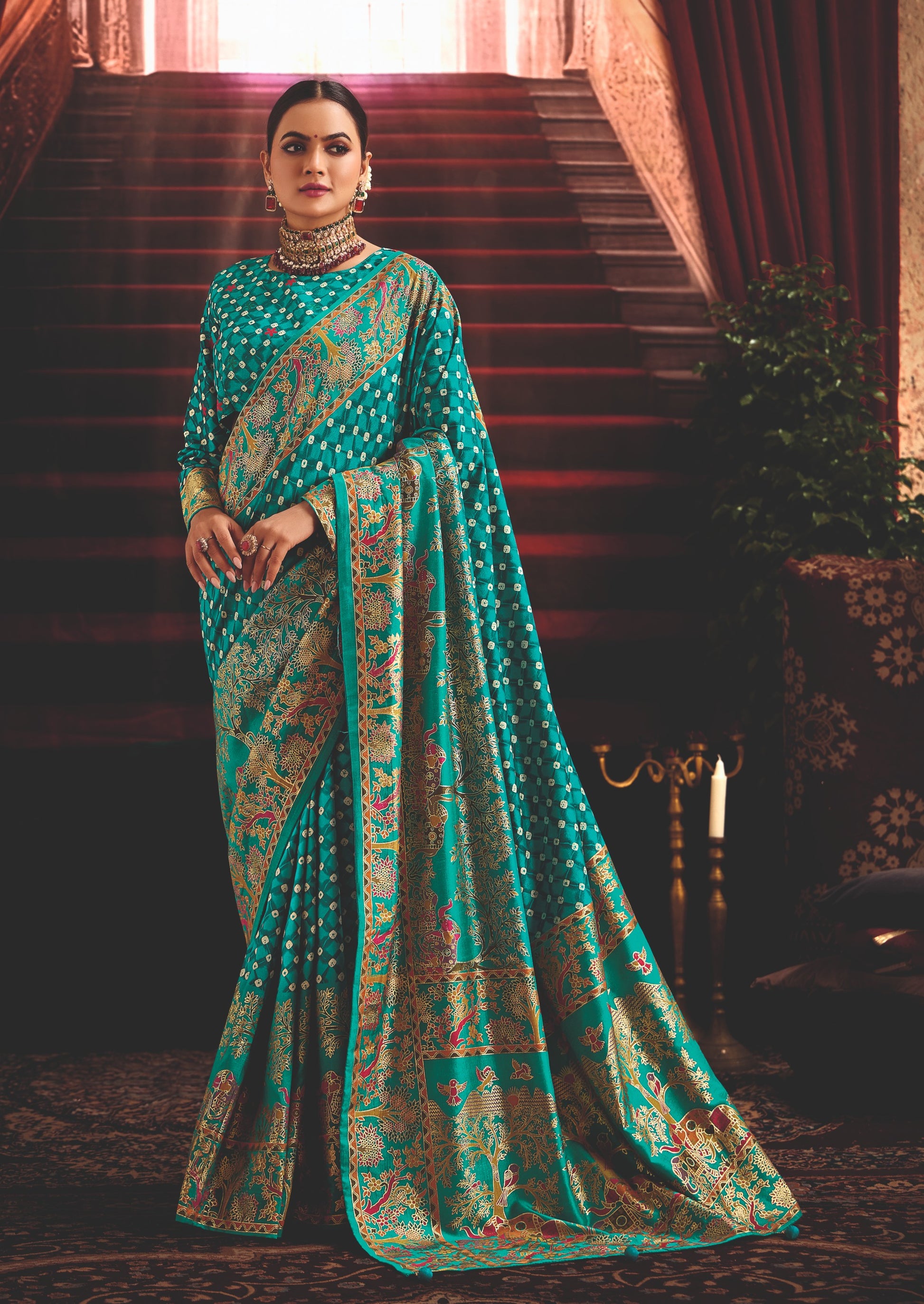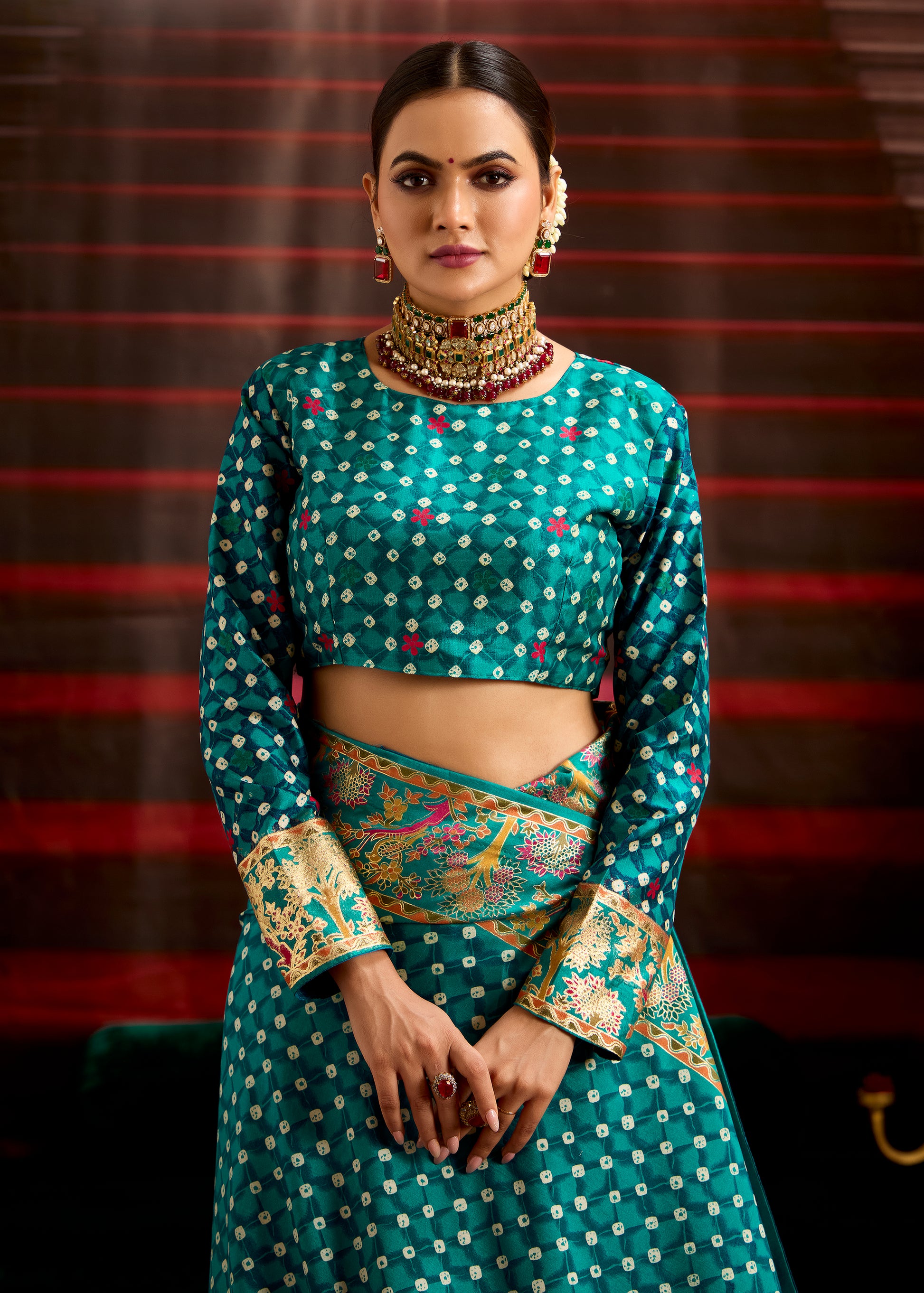 Blouse - Exclusive Looking Silken Fabric with Pacific Blue color Bandhej design.