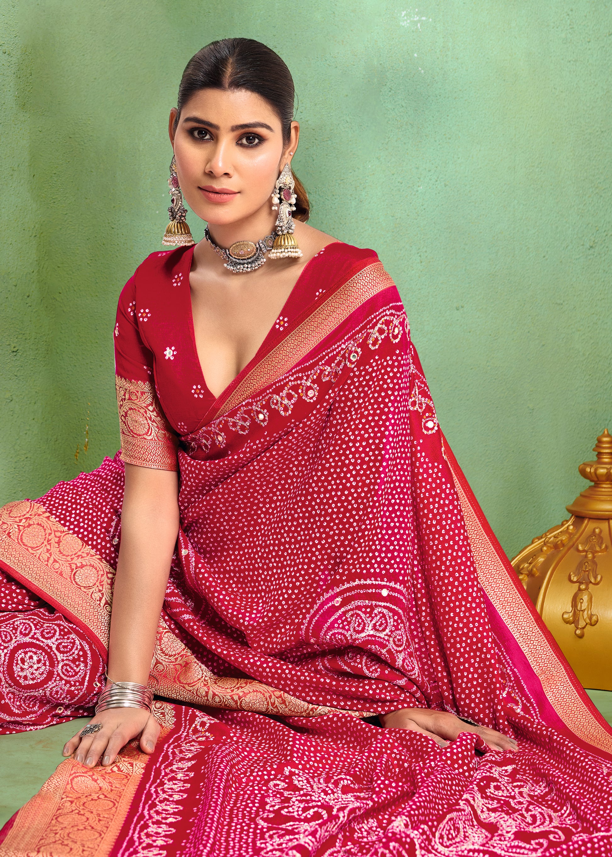 Blouse - Exclusive Rani Pink color design with Bandhej Designer look.