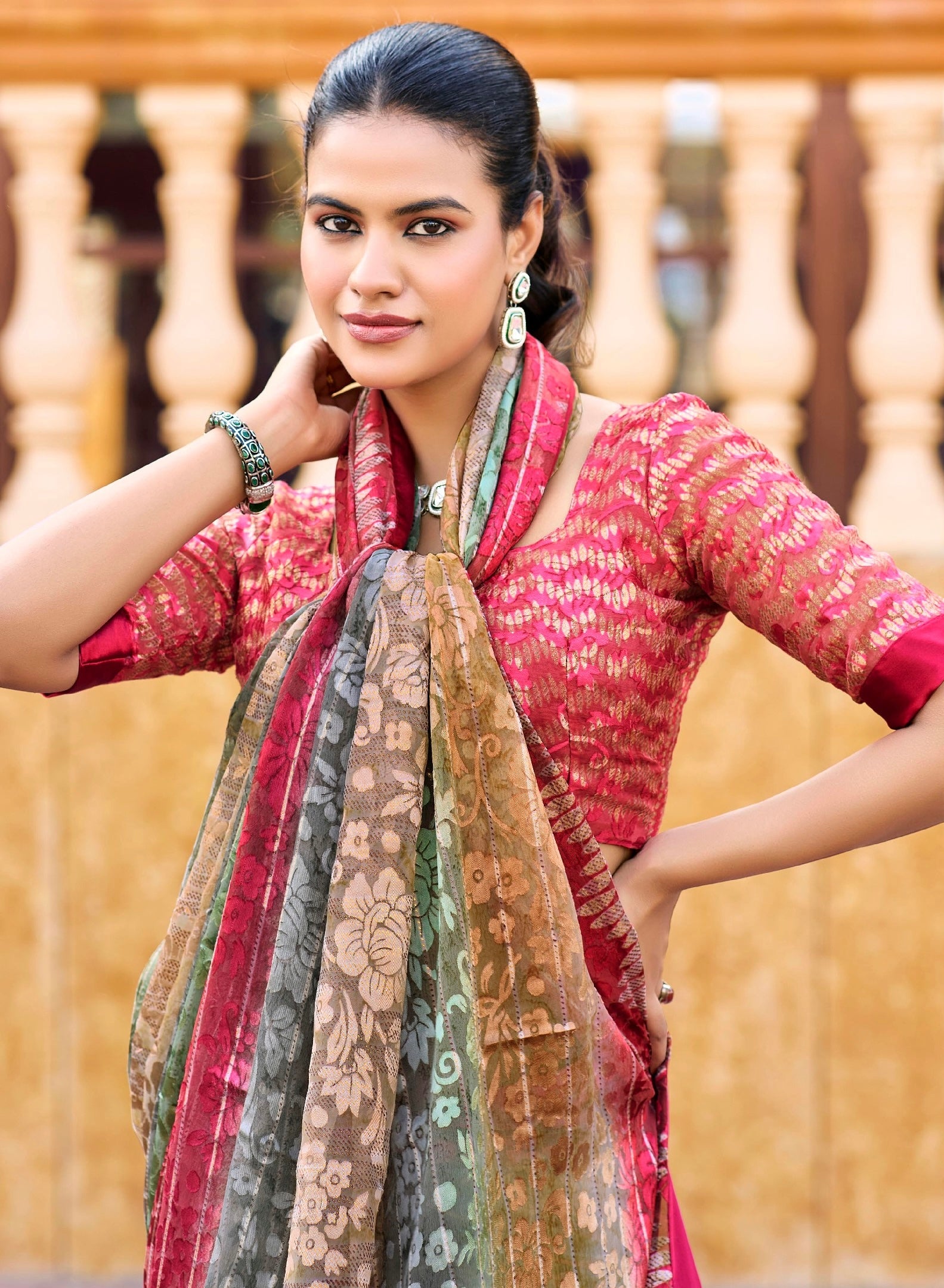 Blouse - Pure Brasso Fabric with Multi-color with Foil Pattern.